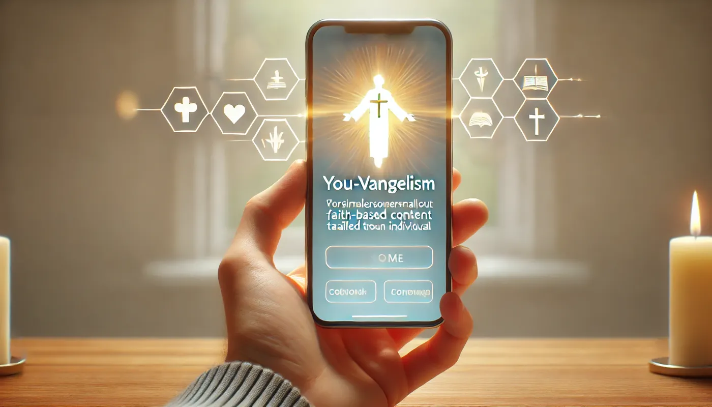 You-vangelism은 "You"와 "Evangelism"의 합성어로, 개인 맞춤형 전도를 의미합니다. 성도 각자의 신앙적 관심사와 상황에 맞춰 전도하는 방식으로, 개인화된 미디어 소비에 익숙한 현대인들에게 효과적입니다.