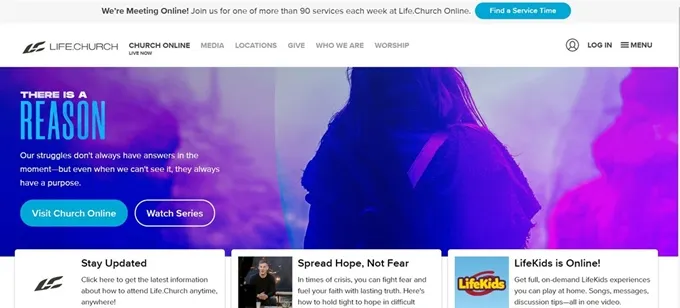 세계 최대 온라인교회 '라이프닷처치(life.church)'의 초기 화면.