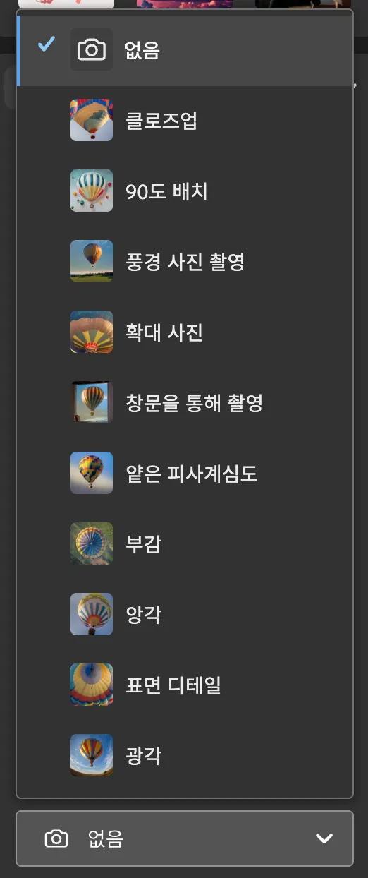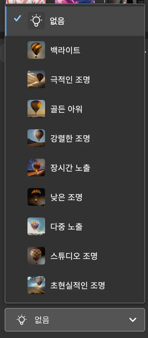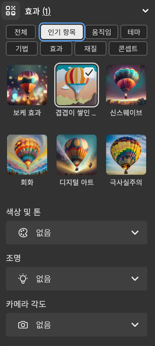 가장 하단에서 원하는 느낌의 효과를 선택한 뒤 프롬프트를 실행해줍니다.