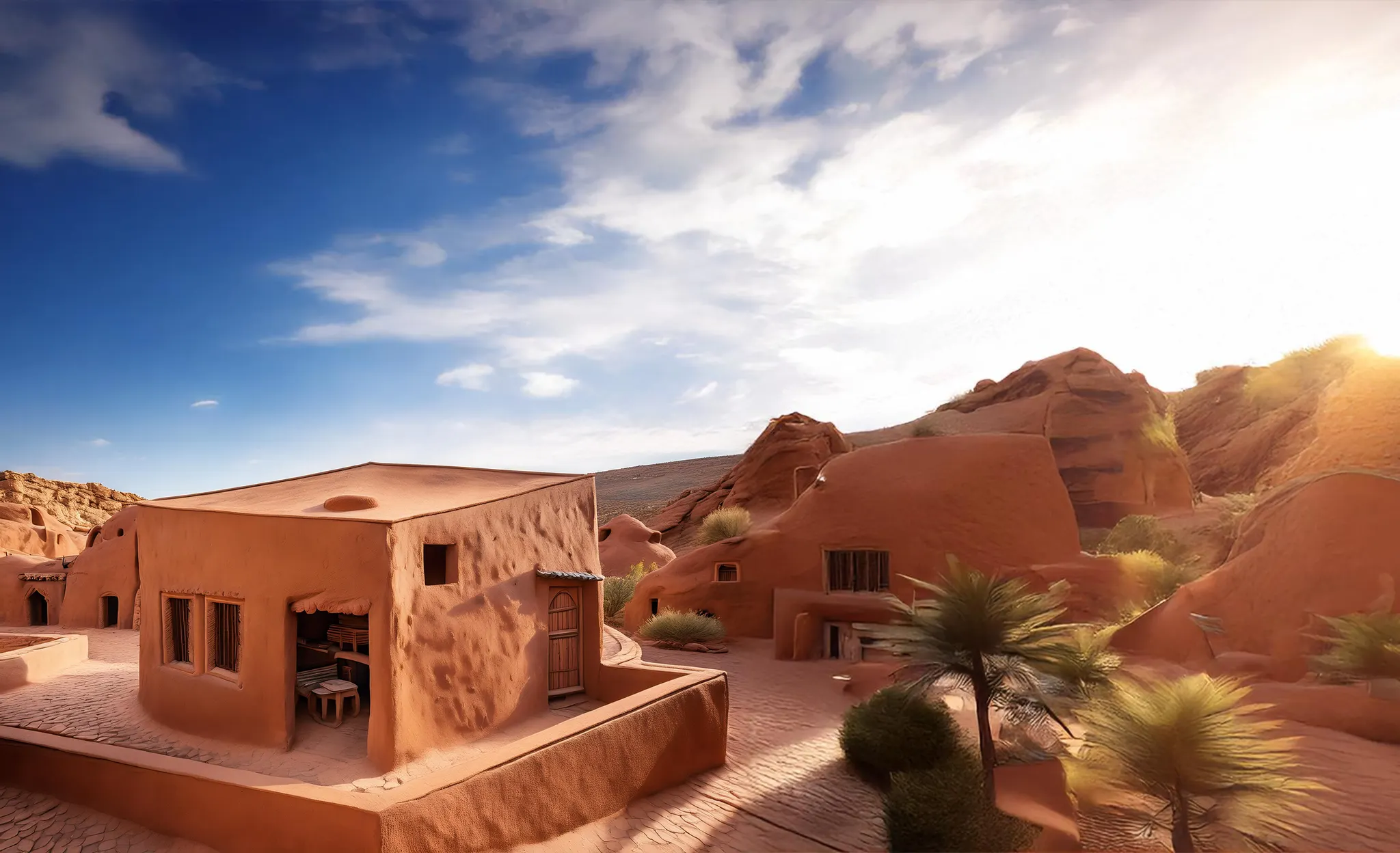 첫 번째 이미지를 참조에 넣어 강도를 최고치로 높인 후 본문 10절을 참고하여 ‘과거 이르스엘 지역의 흙집 모양, 집 내부에는 책상과 의자, 촛대’라는프롬프트(prompt)를 작성하여 이미지를 생성했습니다.