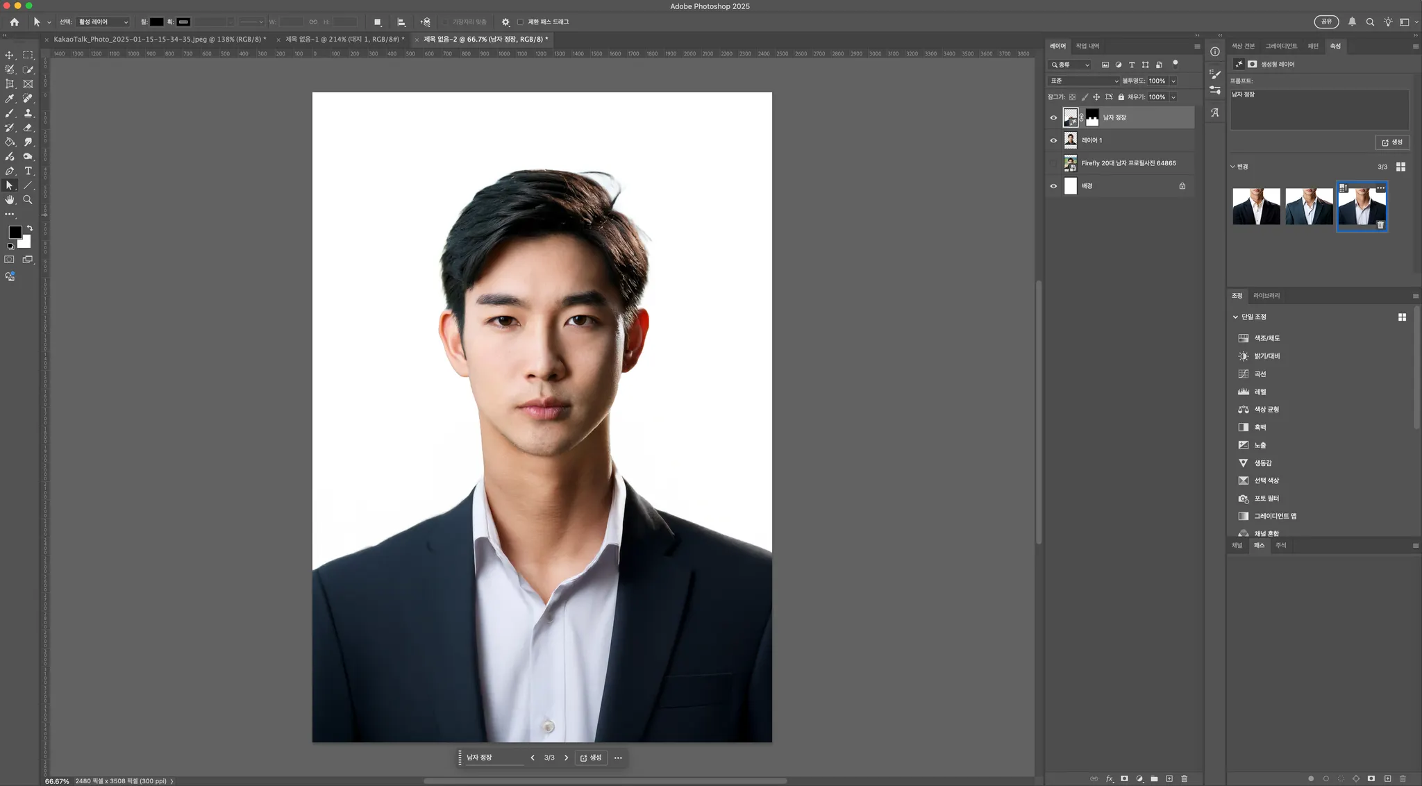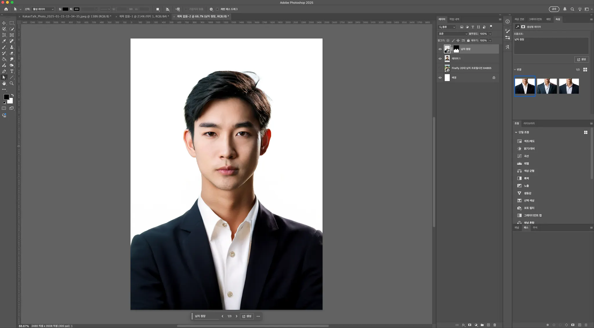 처음 생성했던 사진과 여권사진 느낌의 흰색배경, 프로필 사진 느낌으로 제작해보았습니다!