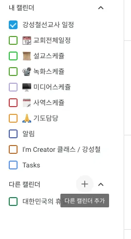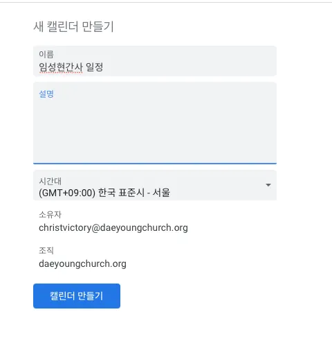 교회 계정으로 로그인 후 캘린더를 세팅합니다.