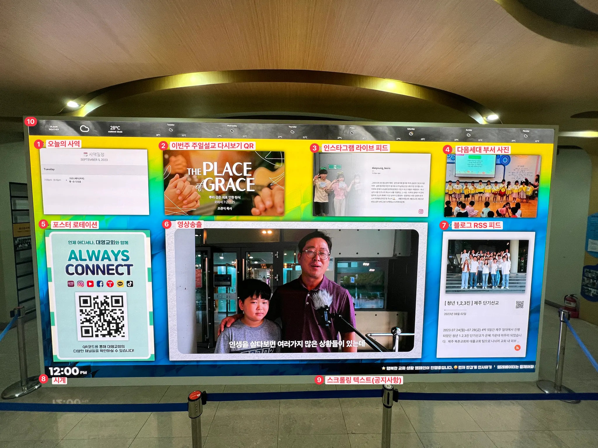 본당이 아닌 로비에 약 240인치의 LED 전광판을 설치 했습니다. 설치한 LED 스펙과 공사개요 사용하게 될 사이니지 앱 선정과정 그리고 앞으로의 운영비전에 대한 이야기들을 담았습니다.