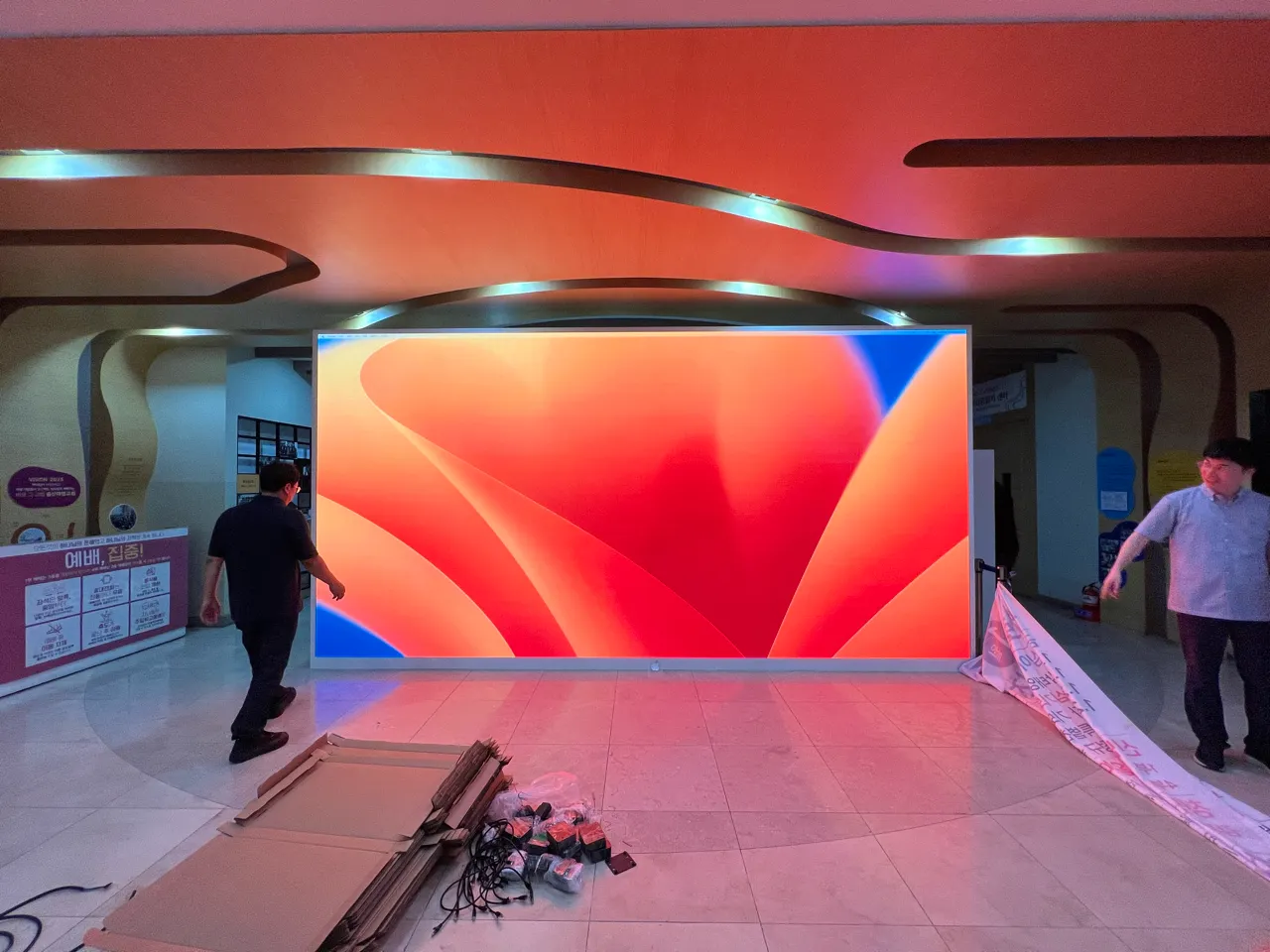 4K 인듯 4K 아닌 해상도 3456 x 1728 이다. 와이드 하게 구성한 이유는 기존 구조물 가로 길이가 5m 였기 때문이다. LED는 네이션스타 리시버와 컨트롤러는 Nova star이다.