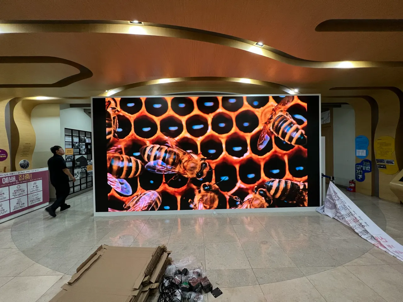 로비에 수 많은 사람들이 오고가는 곳이며 특히나 이런 고가의 LED 전광판이 노출된 상태로 있다는 것에 파손에 대한 우려는 가장 설치후 걱정되는 사안중 하나였다.