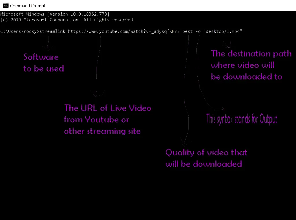 Open Command Prompt as administrator and Paste the live streaming URL in between the command code as shownThe command is: – streamlink best -o “desktop/1.mp4” Paste the URL between the command code like as shown belowstreamlink https://www.youtube.com/watch?v=_adyKqfKHrE best -o “desktop/1.mp4”